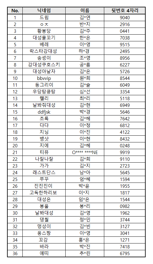 (*해당 명단은 25일 녹화 종료 이후 삭제 예정입니다.)